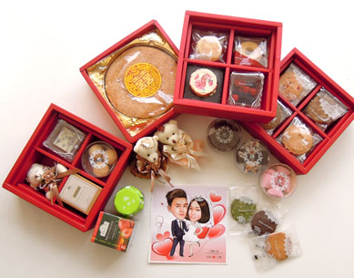 2. 小聘禮:主要為一般的禮餅,如對餅、糕包等,作為訂婚時的行禮。演變至今,多用來表達男方答謝女方親友養育女兒的辛勞。