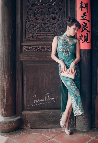 旗袍是最近新人喜愛的款式,原先也是我的選項之一,不過後來認為旗袍還是要量身訂作比較適合身形,這麼一來又得有額外的花費,因此最後放棄了。格外要注意的是,旗袍訂製需要一定的時間,別忘了預留製作時間唷。