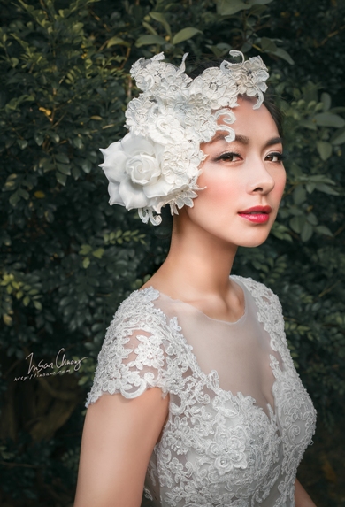 比如我很喜歡頭上的飾品,自己有些髮帶,但與婚紗都不相配,卻發現禮服工作室有合適的,便向工作室借;拍照當天造型師也依據我的喜好幫我準備了合適的面紗以及頭上的造型品,這些都是需要經過事先溝通或是購買的。