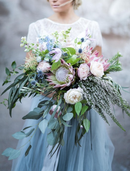 結婚就如一場浪漫的冒險,在重要的婚禮上想營造浪漫的氛圍,捧花是重要的元素。在花的設計上,可以選擇長短不一的款式,打造浪漫慵懶的感覺。若覺得這樣還是不夠浪漫,可以再搭配長長的緞帶,讓花束更加飄逸,完整呈現奔放浪漫的婚紗造型。