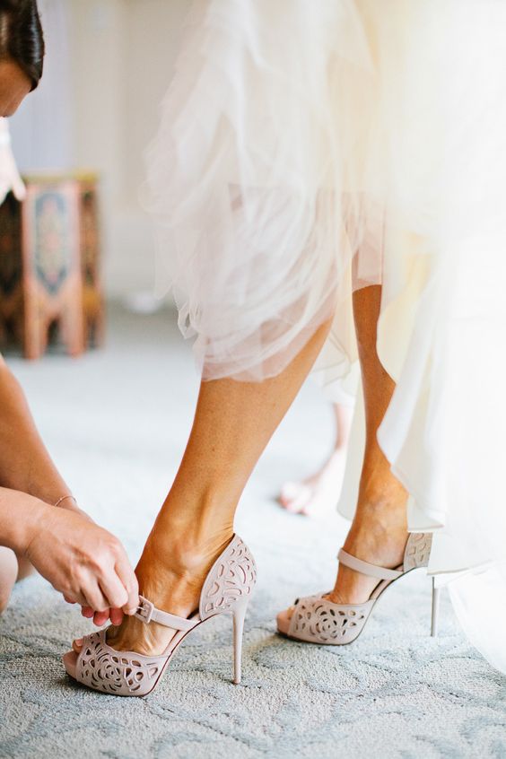 現在許多新人會選擇自助婚紗或是戶外婚禮和婚後派對,如果覺得高跟鞋太過正式或悶熱,可以選擇涼鞋的款式,輕鬆但不失隆重,反而還能呼應現場隨性自在的的感覺。然而在涼鞋的款式上,如果要選擇有綁帶的款式,建議腳踝需要較纖細,當新娘提起裙擺時讓整體線條更加迷人,綁帶也會給人較為正式的感覺。除此之外,在涼鞋的款式上也有兩種款式,第一,腳踝與腳趾後綁帶的設計給人清新脫俗的感覺,然而覺得這樣太簡單,也可以考慮蝴蝶結款式,綁上了蝴蝶結緞帶宛如女王般的氣勢,蝴蝶結能滿足女人的夢想,兼具了性感和純真。