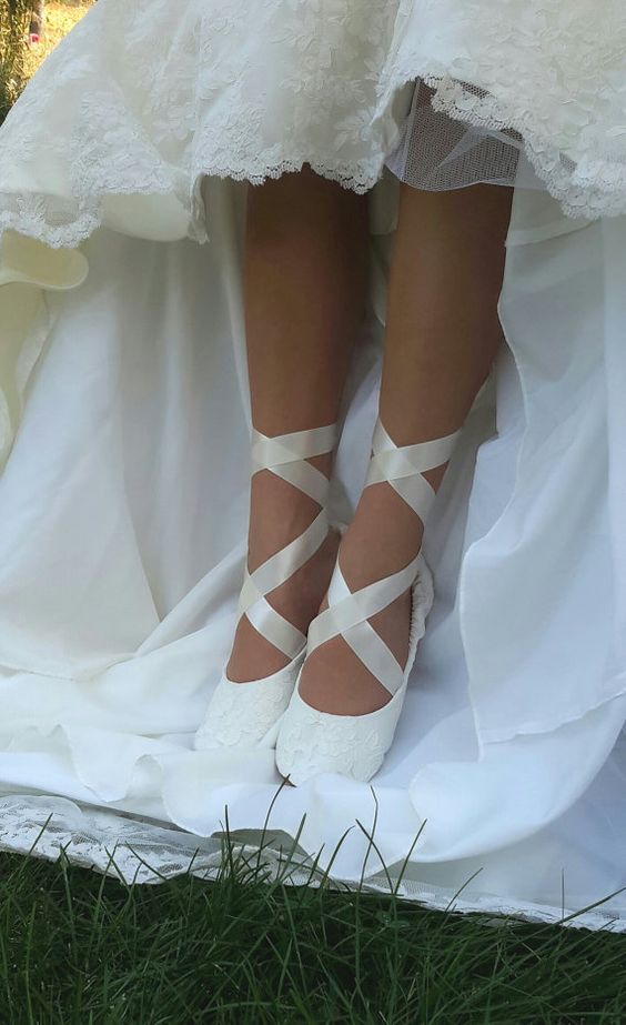 若真的不太習慣穿高跟鞋,並且對穿高跟鞋走路沒自信的話,其實也可以考慮平底鞋,平底鞋像是蕾絲或蝴蝶結或是不一樣質料的混搭設計也可以十分正式而優雅的,帶點亮面的娃娃鞋,不同於高跟鞋的性感,更能襯托出女性的甜美氣息。近年來休閒風盛行,也有許多新潮的新人也會直接搭配休閒鞋,部分改造成鑲鑽或個性鉚釘的裝飾,混搭個性化風格,重點是方便新人能好走動!