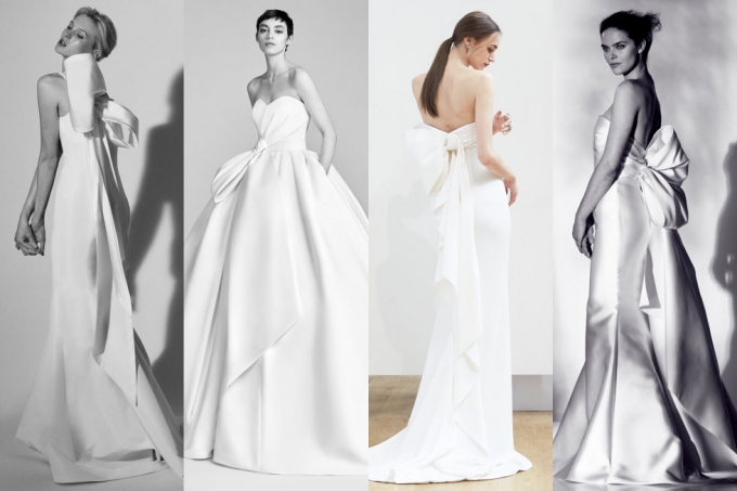 除了婚紗本身的款式之外,新娘也可以留意婚紗上的各種裝飾與搭配。最引人注目的首先是2018年特別流行的大蝴蝶結款式,可愛、性感、絕對是全場焦點。