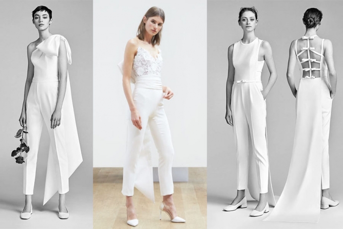 2018年的基本婚紗款式,延續了近幾年的中性風格。對於不喜愛裙裝的個性派女孩,褲裝婚紗不但特殊、更具有機動性,優雅的剪裁凸顯高挑的雙腿,獨具一種利落的優雅感受。