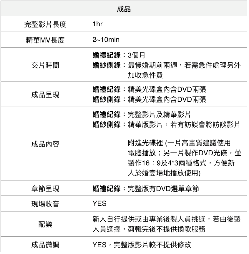 預約前建議新人可以看各家廠商不同的影片,先挑選自己喜歡的影片風格,那會希望新人不要拿著其他廠商的影片來找我們說要拍攝的跟這影片一樣,因為每一家的風格、拍攝方式都會有自己獨特的美感。