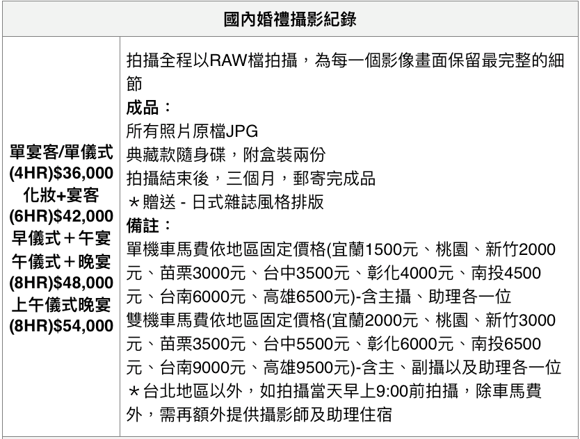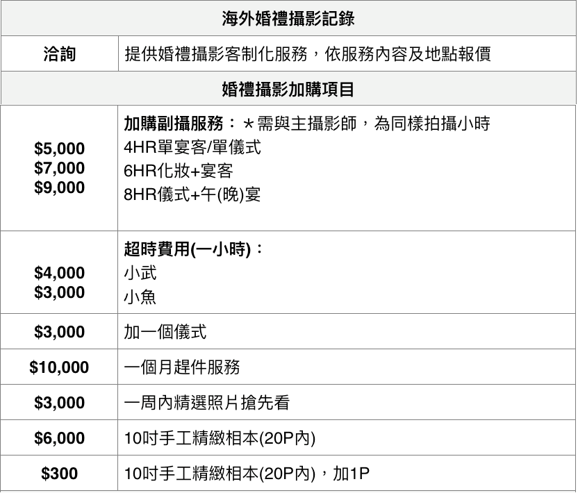 TIAMO團隊的攝影服務從未有任何優惠與折扣
