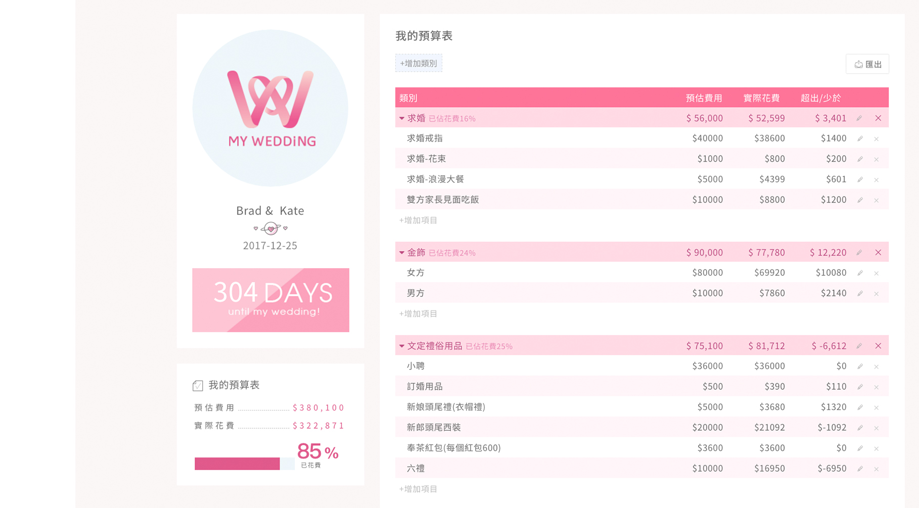 有效管理你的婚禮花費,清楚分配預算,打造你的完美婚禮。