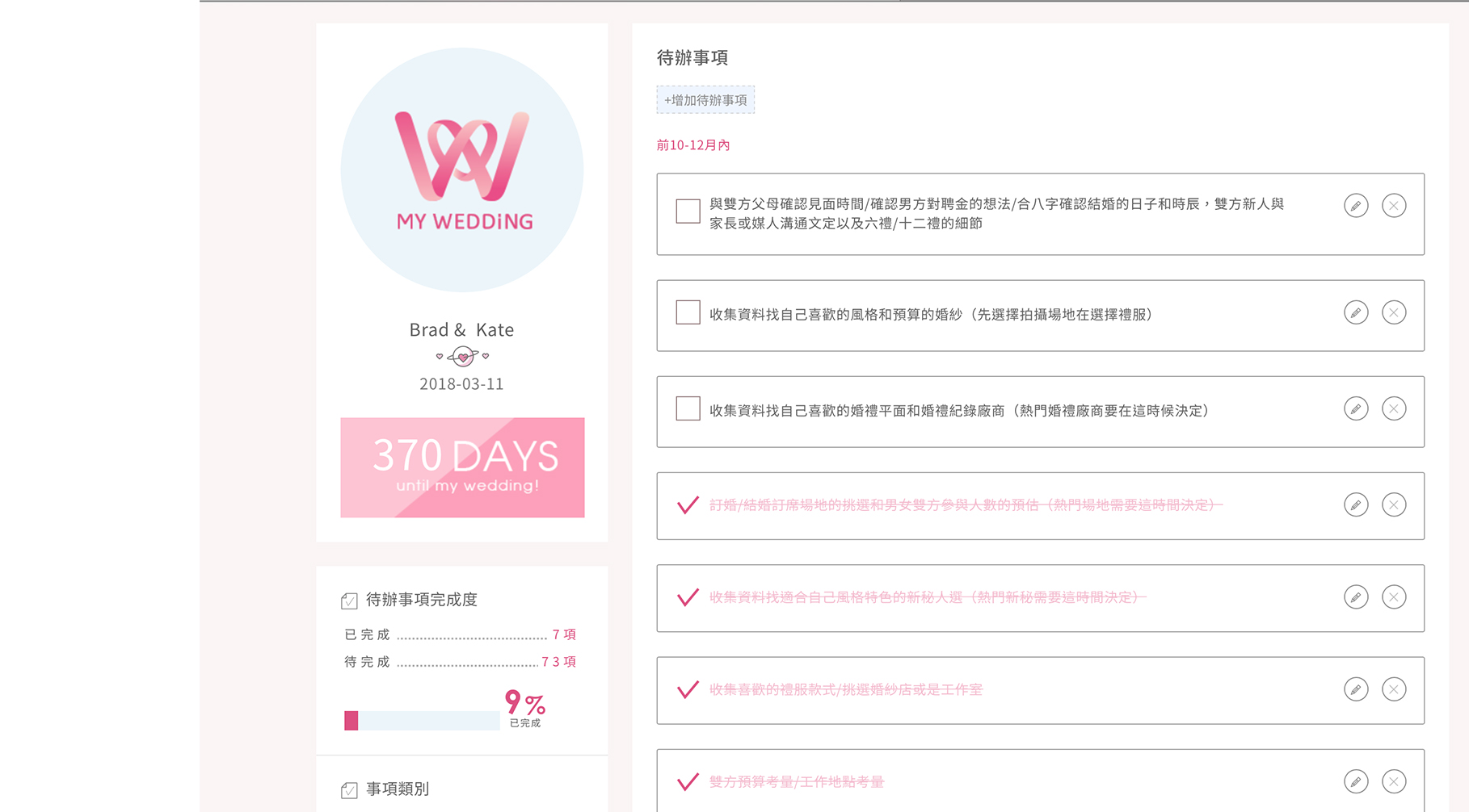 管理及追蹤婚禮大小事,按歩就班 讓結婚 不再是麻煩事 。