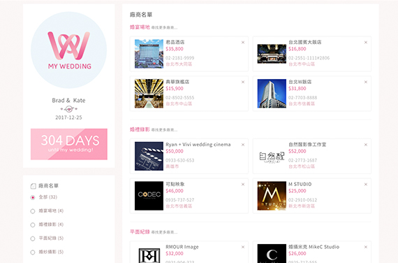 收藏喜愛婚禮服務廠商,優質廠商一網打盡,找出最適合你的需求。